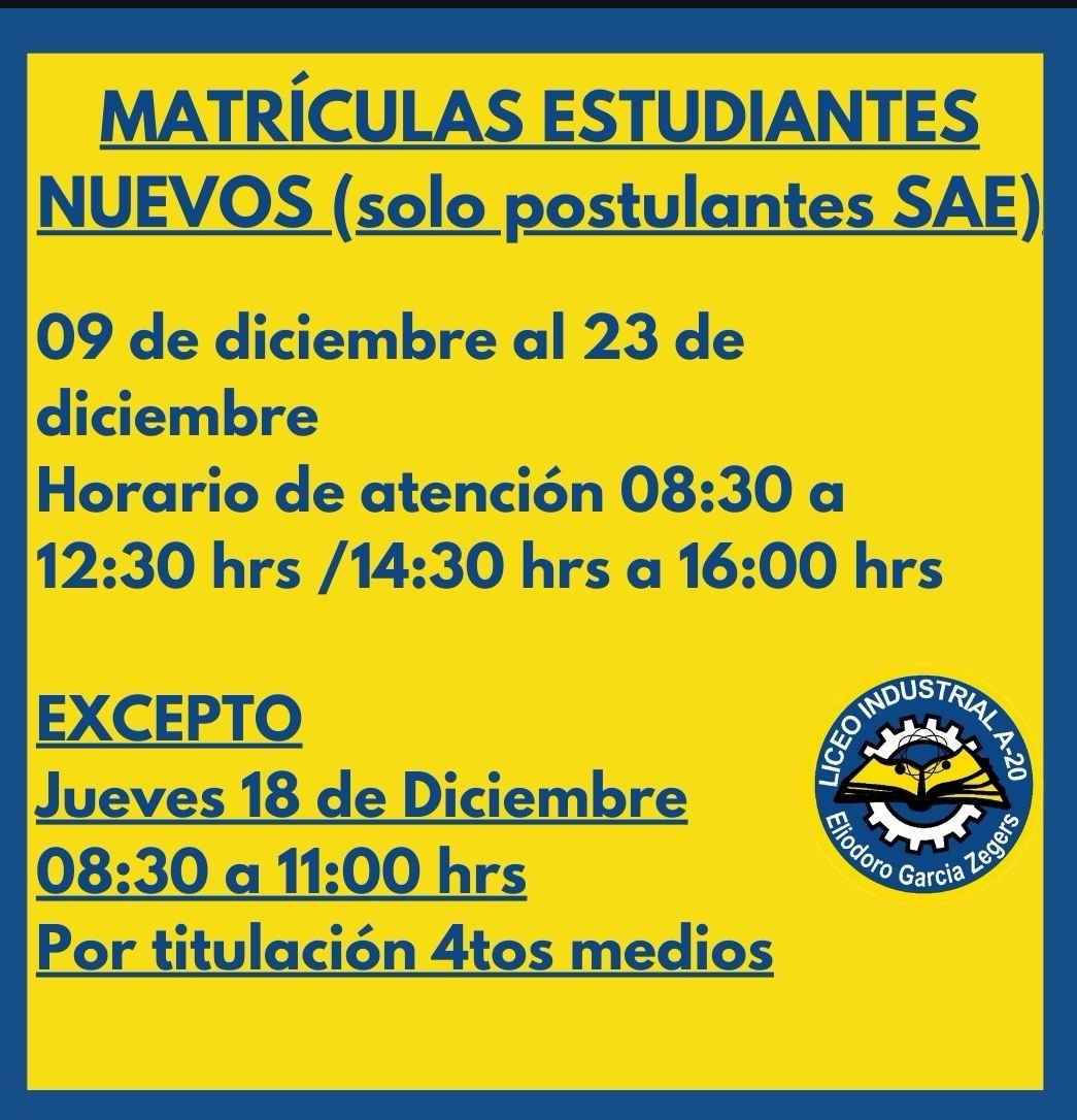 ¡ATENCION! Matrículas estudiantes nuevos