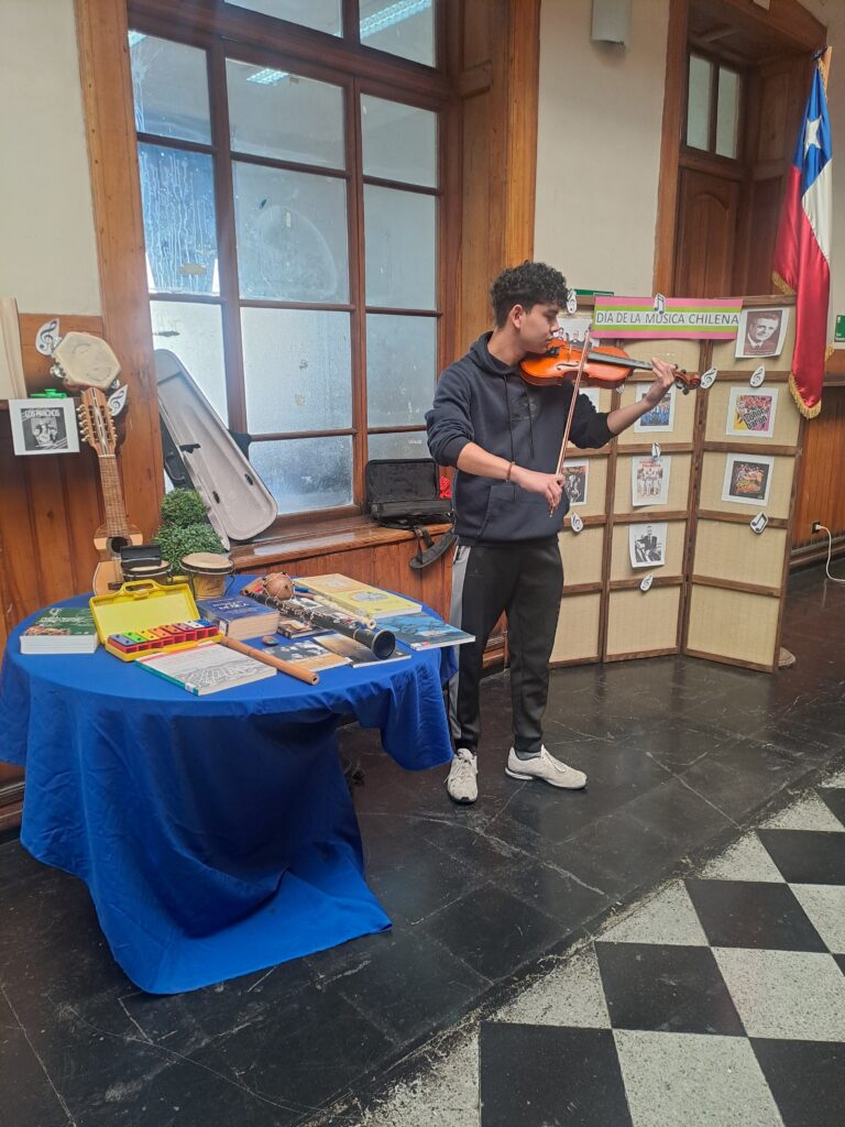 El día 4 de octubre se celebra el «Día de la música chilena». Desde 2015, por ley, se celebra esta fecha que marca el natalicio de la cantautora, pintora, escultora y bordadora, Violeta Parra. Nuestro Liceo no está ajeno a esta celebración, por lo que en conjunto con el CRA, el taller de música y el taller de serigrafía se realizó una pequeña muestra cultural.